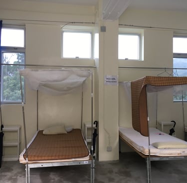 一路上轉車換船終於抵達山腳,然後還要冒雨拖著行李,走一段晴天時只需十五分鐘、雨天卻顯得格外漫長的路。還未開始修行,身體先經歷了一場試煉。狼狽地抵達中心後,連沖身乾衣的時間也沒有,便匆匆跟著大隊走進禪堂,盤腿坐下,開始第一課的靜坐。