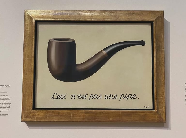 Another must-see is René Magritte's classic work The Treachery of Images (This is Not a Pipe), created when he was just 30. The painting shows a large pipe with the phrase 'Ceci n'est pas une pipe' underneath, prompting viewers to ponder the relationship between reality and representation, a quintessential exploration of surrealism.