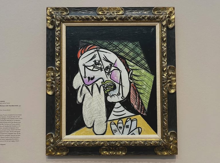 The collection also includes Weeping Woman with Handkerchief by Pablo Picasso, depicting the artist's muse, Dora Maar. The theme of 'the weeping woman' was one of Picasso's favourites, with similar works housed in renowned museums worldwide, such as Tate Modern in the UK and the National Gallery of Victoria in Australia. The image of the crying woman was inspired by the tragedy of the bombing of Guernica, which Picasso addressed in his monumental anti-war painting, Guernica created in June 1937.