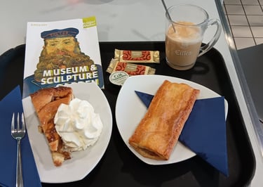 飯後漫步至戶外雕塑公園,邊走邊想:香港的藝術創作空間實在太過狹窄。這裡能自由擺放各式各樣、大大小小的作品,若換作香港,恐怕早已被冠上「阻街」之名,更遑論其他無形的框架。就這樣在深山度過充滿藝術氣息的下午,整個人都變得容光煥發,終於能親眼欣賞如此多的梵谷作品,此行不枉!