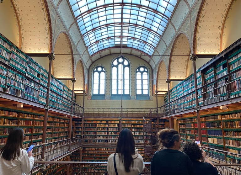 荷蘭黃金時期的畫作總讓人流連忘返。簡單構圖中蘊藏戲劇張力,光影交錯間訴說永恆故事。途中經過博物館內的圖書館,那古典氣息讓人彷彿踏入哈利波特的魔法世界。
