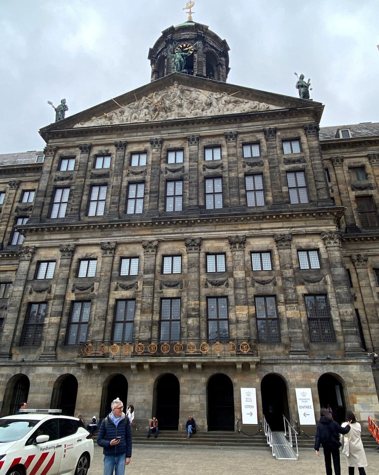 心滿意足地參觀了三小時後,我找了一間小店吃個午餐,接著再參觀Royal Palace。這座建築從黃金時代的市政廳,歷經拿破崙的皇宮時期,到如今的Dutch Royal House,每一磚瓦都刻著歷史的痕跡。我對皇宮總是懷著矛盾心情,雖然我喜歡欣賞建築的壯麗與室內奢華陳設,同時老是覺得暗沉的房間都籠罩著某種陰鬱,彷彿昔日的榮光與哀愁仍在空氣中低語。