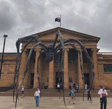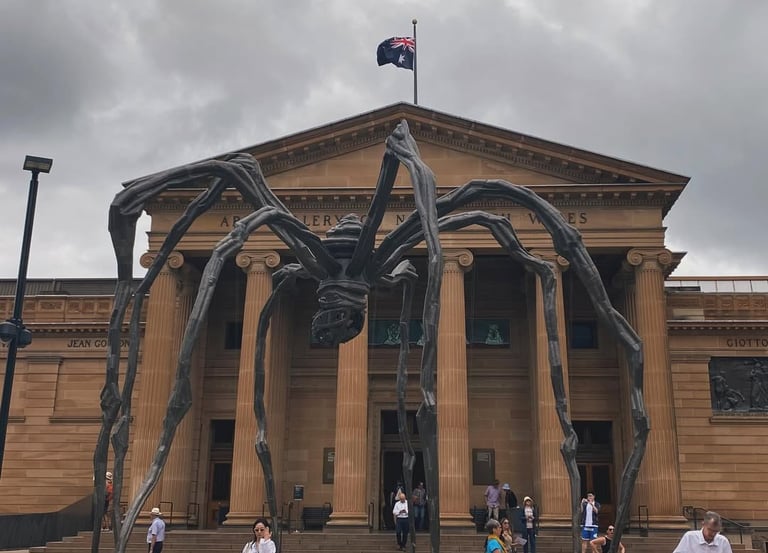 到訪新南威爾斯美術館(Art Gallery of New South Wales)的訪客,大概有許多人會像我一樣,還未踏入展廳便在馬路一端停下腳步,拿出手機拍個照,凝視那座逾九米高的巨型蜘蛛雕塑《Maman》。它出自法裔美國藝術家路易絲·布爾喬亞(Louise Bourgeois)之手,以沉默而強大的存在吸引遊人目光。