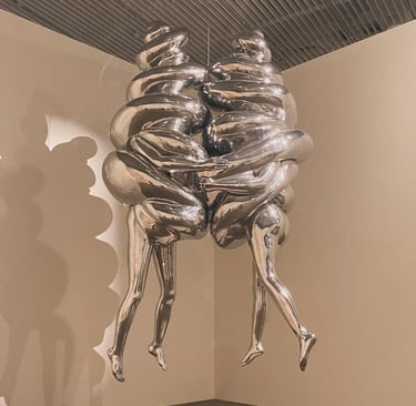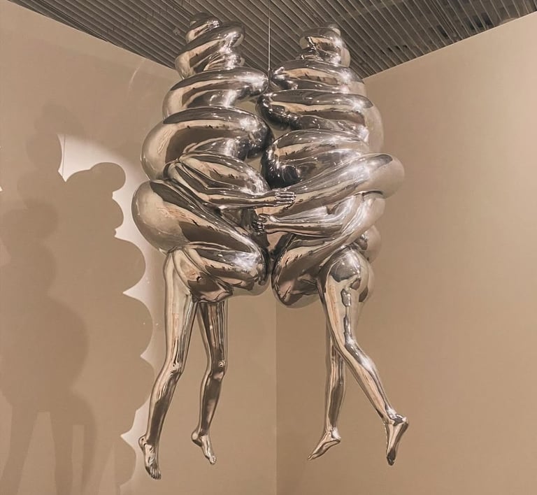 在「When You Come to Me」展區,最吸引眼球的一定是懸在空中的雕塑,彷彿兩個身軀扭在一塊兒。經歷過愛情與失去,布爾喬亞把愛情詮釋在藝術作品中。她說:「You are born alone. You die alone. The value of the space between is trust and love.」