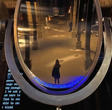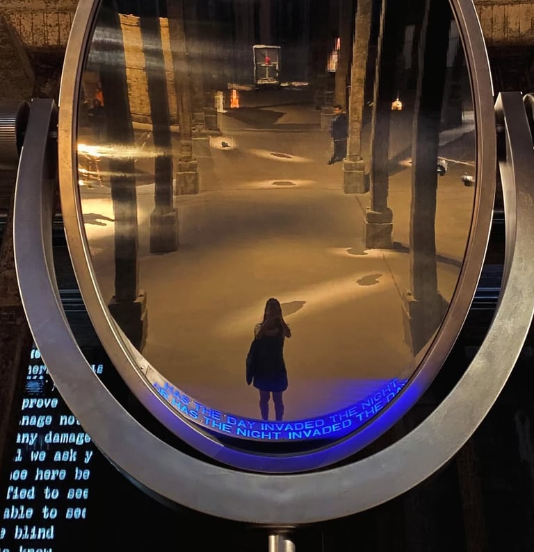 同名的鏡面雕塑《Has the Day Invaded the Night or Has the Night Invaded the Day?》矗立其中,觀者映照其間,看見扭曲卻也真實的自己,得以在鏡像中展開一場沉默的內省。
