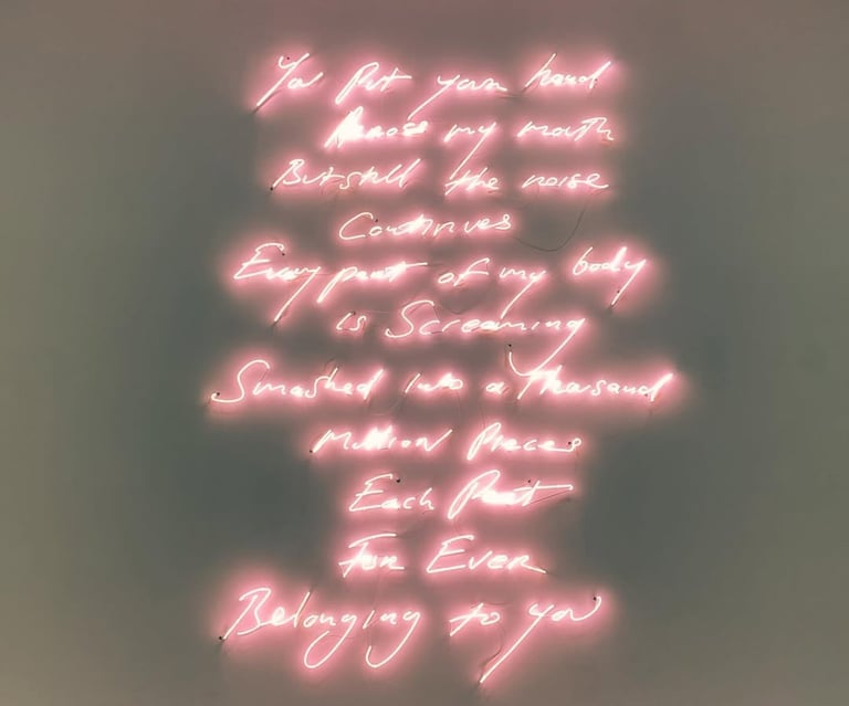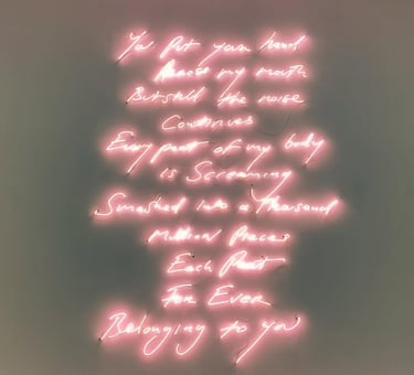 三年展的作品分佈於美術館多個樓層,有些更與常設展並置,相互呼應。二樓可見Tracey Emin的《Love Poem》,以她標誌性的霓虹燈媒介呈現一段充滿詩意的親密記憶,探討愛、欲望與失落之情。